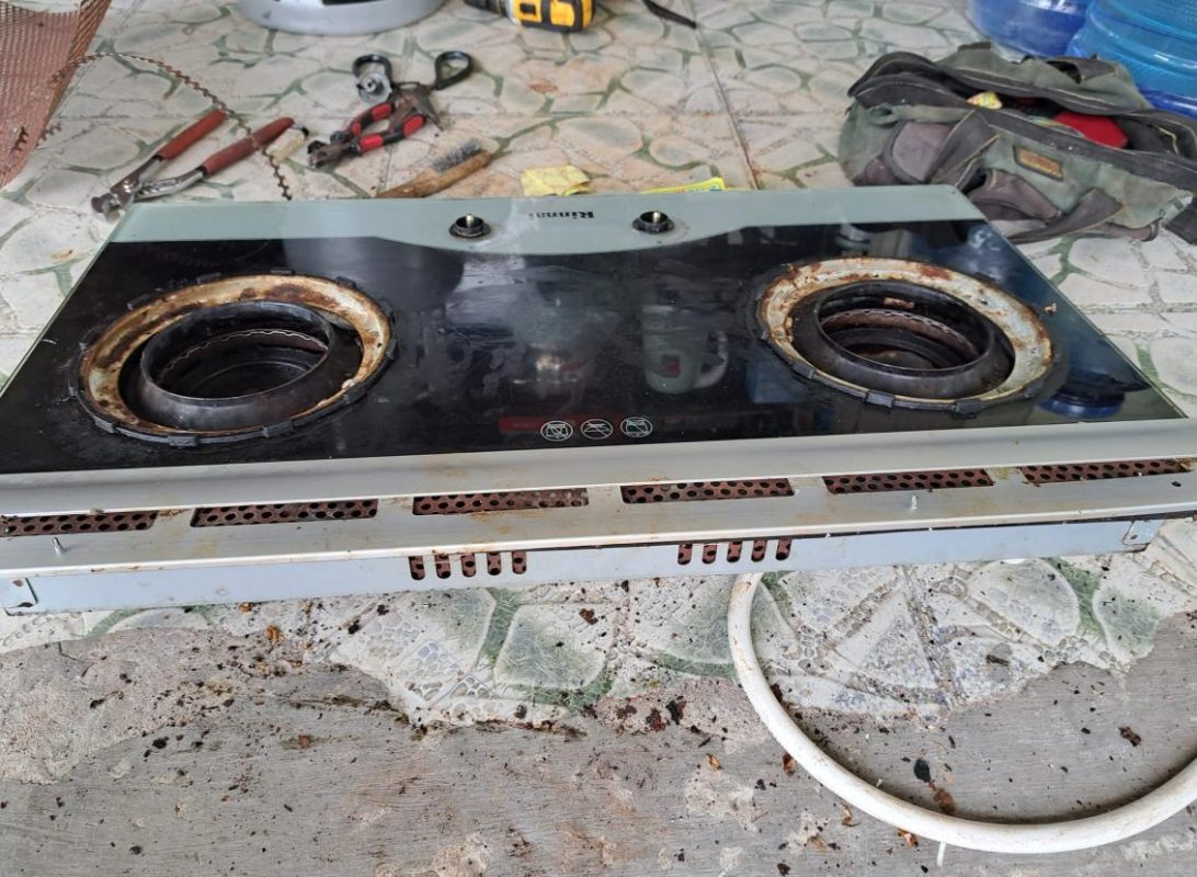 - Để nước, dầu tràn vào mâm đốt. Làm lửa khó cháy, đầu đốt gỉ, bếp nhanh hỏng.
